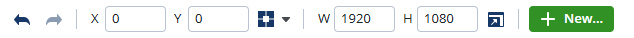Mit den Textfeldern wird die absolute Position (X/Y) im Container und Größe (W/H) des Elements in Pixeln angegeben und kann geändert werden. Mit dem Dropdownmenü Zentrieren kann das ausgewählte Element in allen Richtungen zentriert, oder nur horizontal oder vertikal zentriert werden. Der Button Maximieren sorgt dafür, dass das Element auf die Größe des übergeordneten Containers skaliert wird.